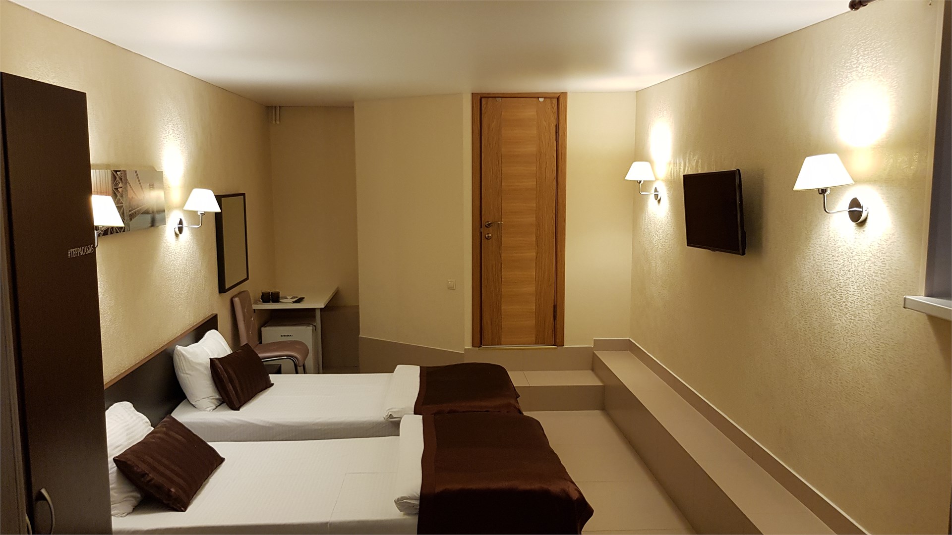 | Люкс 2-местный TWIN | 25 кв.м. | 2 чел. | Мебель (вешалка, зеркало, кресло-кровать, кровати односпальные, прикроватные тумбочки, стол, стул, ш... | |